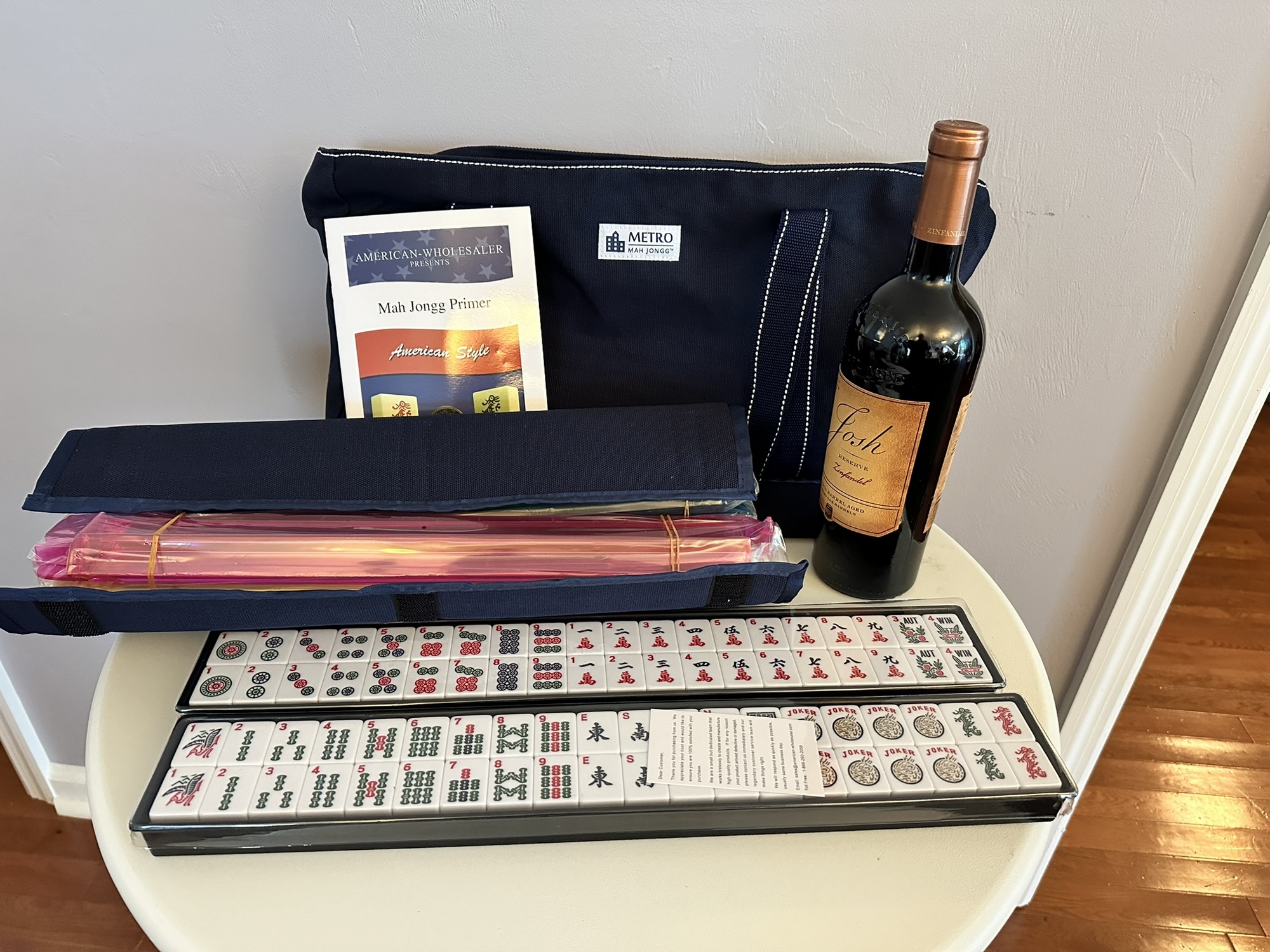 Gather your friends for an unforgettable evening of fun and strategy! Elevate your game nights with this exquisite Mahjong set, perfect for both seasoned players and newcomers alike! This package includes a bottle of wine and comes in a stylish carrying case for easy storage and transport.