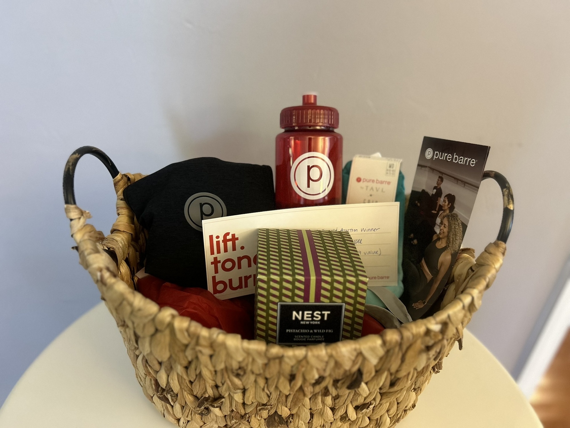 Transform your fitness routine with this exclusive Pure Barre Gift Card Package! Perfect for both beginners and seasoned fitness enthusiasts, this package offers a chance to strengthen your body and enhance your well-being. This package contains a certificate for 10 classes, barre socks, workout top, water bottle and Nest candle.